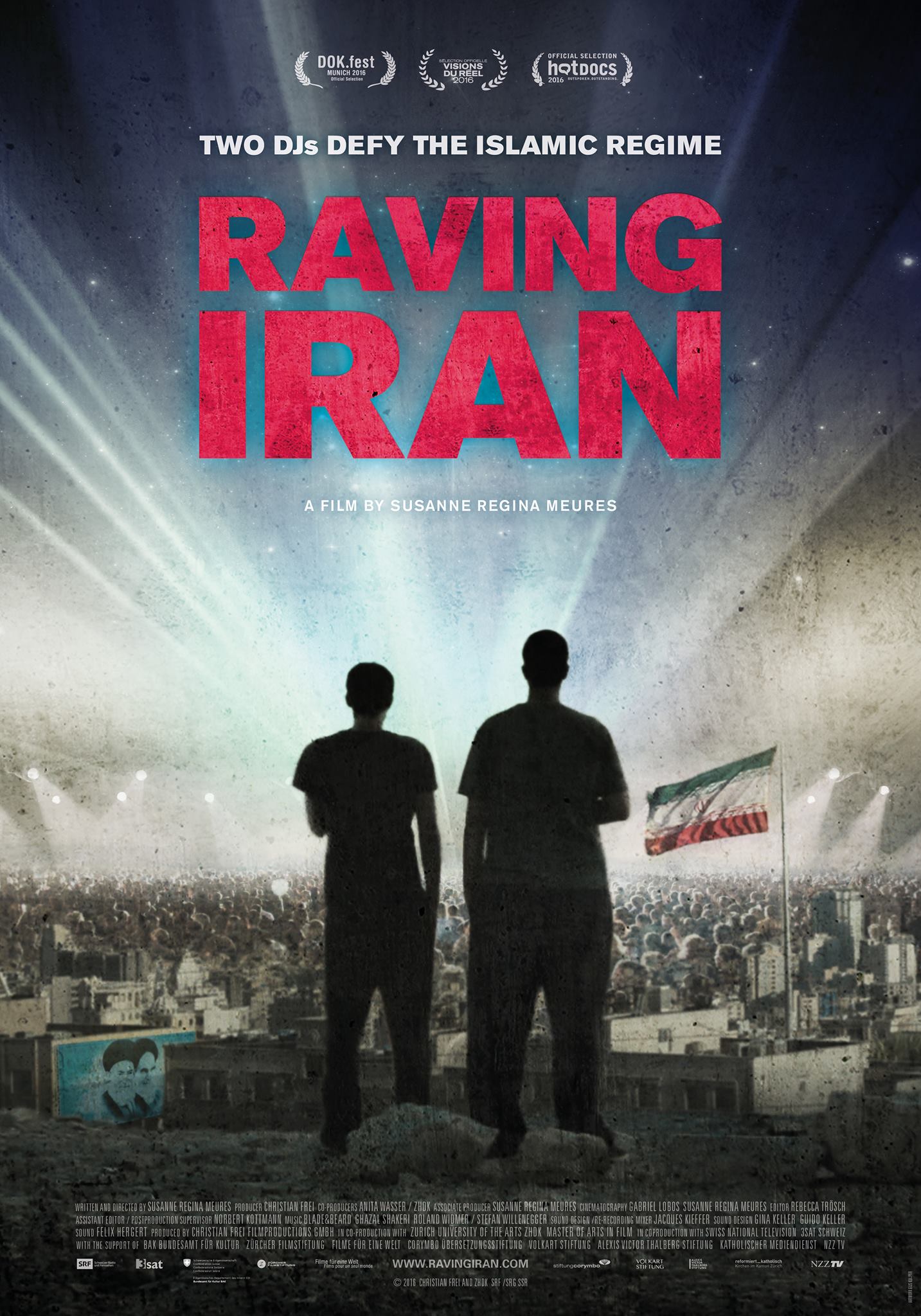 Die Islamische Republik hat uns gelehrt, Umwege zu nehmen, erläutert der Verkäufer seine Angebotsstrategien, die es ihm ermöglichen, unter dem Tisch auch illegale Waren anzubieten. Arash und Anoosh, Techno-DJs in Teherans großer Underground-Partyszene, versuchen hier ihre CDs zu vertreiben, die keine staatliche Erlaubnis erhalten haben. RAVING IRAN fährt mit den DJs zu verbotenen Gigs, ist dabei, wenn sie einen Rave in der Wüste organisieren, Schmiergeld zahlen, wenn sie mit der Zensur streiten und wenn sie verhaftet werden. 'Wir müssen hier weg', beschließen sie. Da kommt die Einladung zur Street Parade nach Zürich wie gerufen. Doch die Entscheidung, dem Ruf in die Schweiz zu folgen, fällt nicht leicht. Silvia Bauer OmeU Susanne Regina Meures Mönchengladbach, 1977. Nach einem Studium der Fotografie und Kunstgeschichte in London freie Fotografin für verschiedene Medien und seit 2010 als Bildredakteurin für die NZZ tätig. Seit 2012 Filmstudium in Zürich. Lebt in London und Zürich. Kamera: Gabriel Lobos, Susanne Regina Meures. Ton: Farshad Shokufahr. Schnitt: Rebecca Trösch. Musik: Blade & Beard, Ghazal Shakeri, Roland Widmer, Stefan Willenegger. Produktion: Christian Frei Filmproduktionen GmbH. Produzent: Christian Frei. Länge: 84 min.